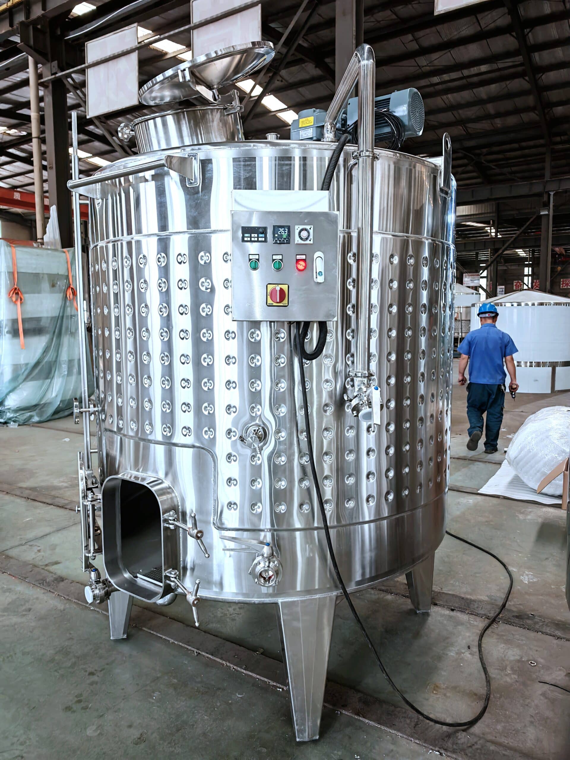 The interior surfaces are designed for easy cleaning and maintenance, often featuring Clean-In-Place (CIP) systems that streamline sanitation processes.