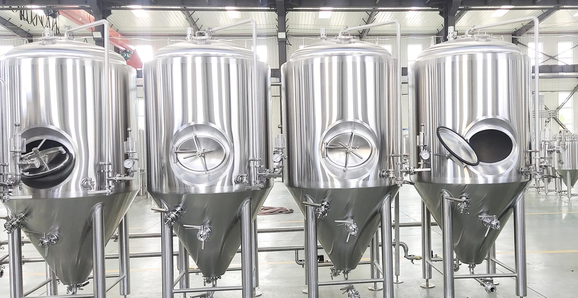 Stainless steel conical fermenters are specialized tanks used in brewing, characterized by their unique cone-shaped bottom that facilitates efficient fermentation and yeast management. The design typically features a cylindrical upper section and a conical base, with angles ranging from 60° to 90°. This structure allows for effective sedimentation, where yeast and other solids settle at the bottom, enabling easy removal through a valve.